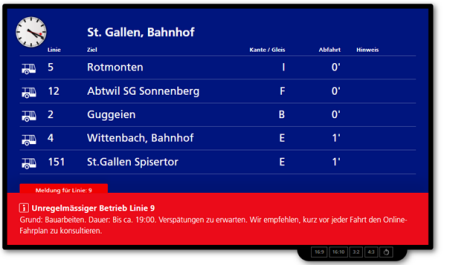 Mit dem öV Plus Abfahrtsanzeiger können Privatpersonen als auch öffentliche Einrichtungen eine individuelle digitale Abfahrtsanzeige ab der nächstgelegenen Haltestelle konfigurieren und auf eigenen Screens aufschalten. Damit wissen Kundinnen und Kunden auf einen Blick, wann Bus oder Bahn fahren.